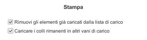 Sì, quando si crea un rapporto di stampa, basta selezionare l'opzione "Carica gli articoli rimanenti in ulteriori spazi di carico" e l'intero carico verrà automaticamente suddiviso nel numero richiesto di spazi di carico.