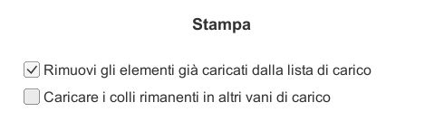 Se si desidera caricare gli articoli rimanenti in un altro tipo di vano, non selezionare l'opzione "Carica gli articoli rimanenti in altri vani" e lasciare selezionata solo la prima opzione, "Rimuovi gli articoli caricati dall'entrata". Nella fase successiva, sarà possibile selezionare il vano di carico come richiesto.